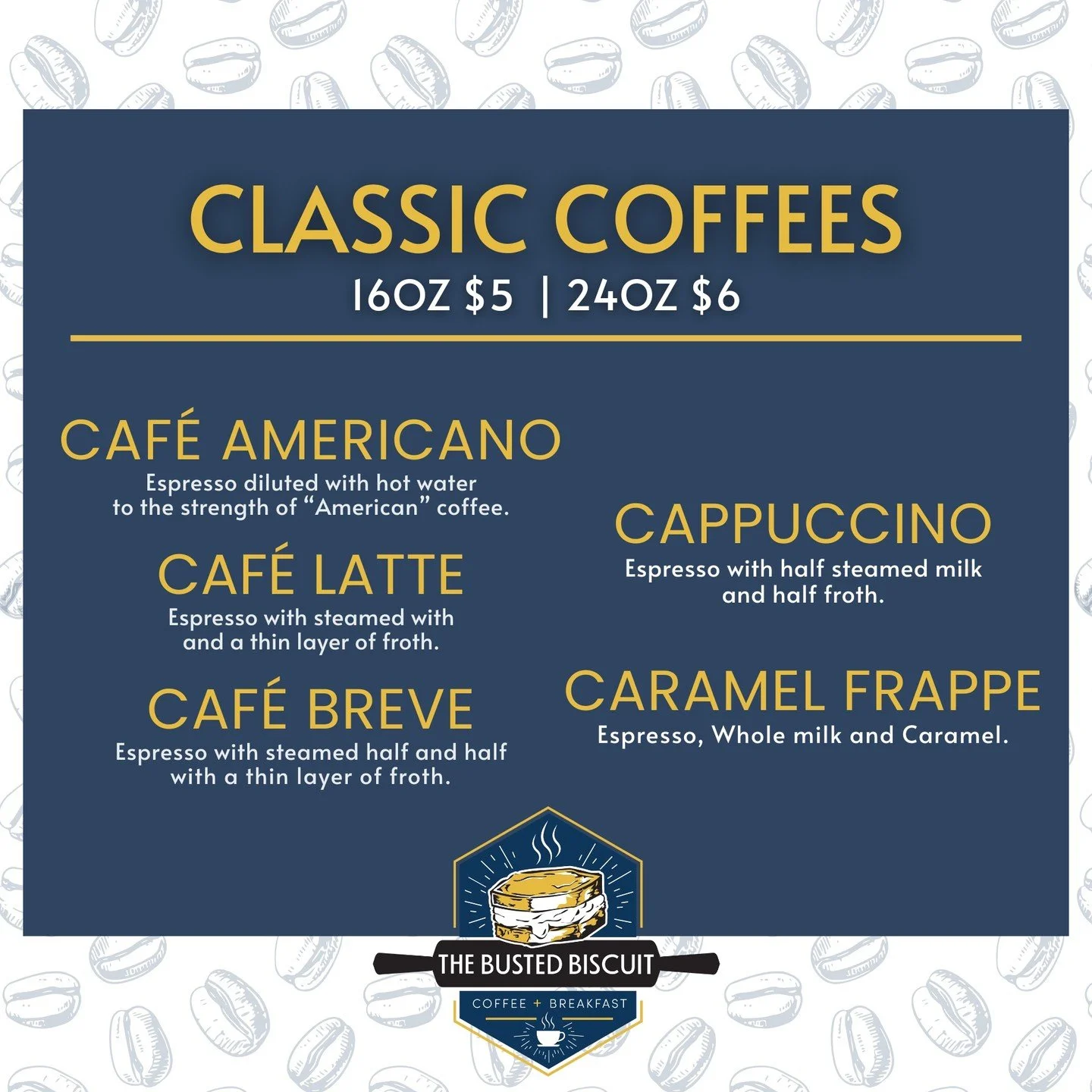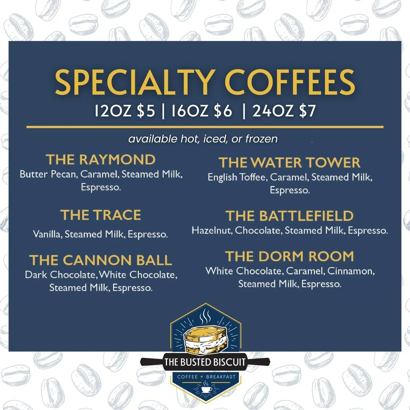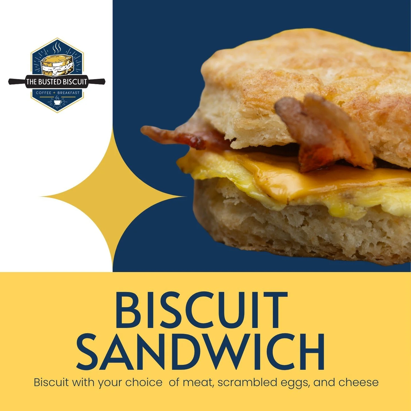 But we’re more than just a restaurant; we’re a gathering place for the community. From the first sip of our hand-crafted coffee to the last bite of our famous biscuits, we’re here to make sure every visit feels like coming home. We offer breakfast all day, and with our range of delicious lunch and dinner options, there’s something for everyone at The Busted Biscuit.
