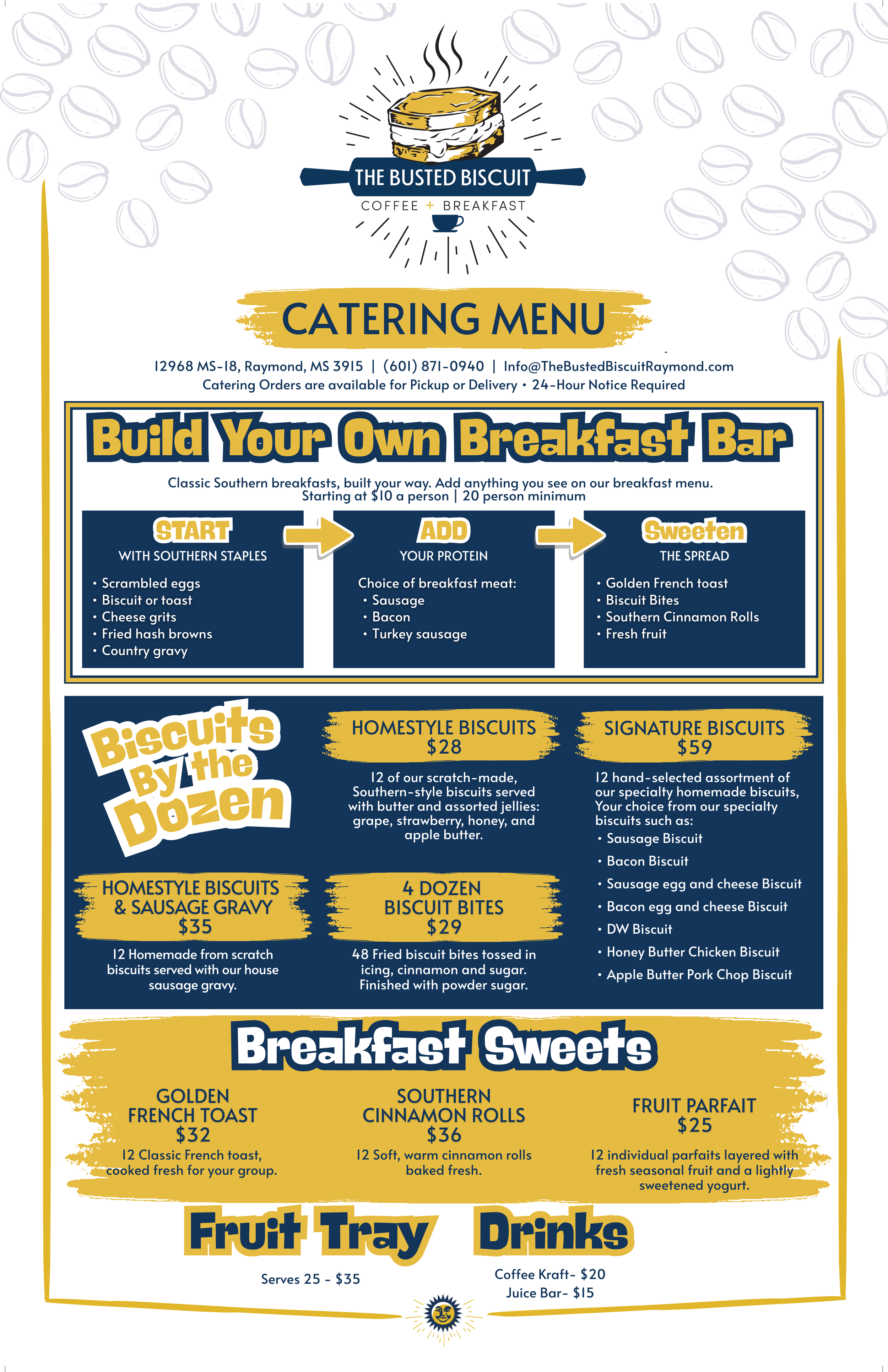 Looking for unforgettable breakfast catering in Raymond, Mississippi and the surrounding areas? The Busted Biscuit brings our made-from-scratch Southern breakfast straight to your event. From office meetings and church gatherings to school events and family celebrations, our catering menu is designed to feed a crowd with comfort food people actually get excited about. We proudly serve Raymond and travel to nearby communities including Jackson, Madison, Clinton, Byram, Brandon, and Vicksburg (and other locations within 15–20+ miles). If you’re searching for breakfast catering near me, biscuit catering, or Southern catering in Central Mississippi, you’ve found it.